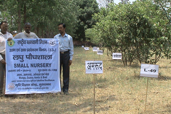 "Establishment of small nursery for fast multiplication of elite clones and new varieties of mango, guava and litchi/aonla in 12 districts of western U.P. (Bilari) at KVK farms" under U.P.C.A.R. - State Horticulture Mission, U.P.
